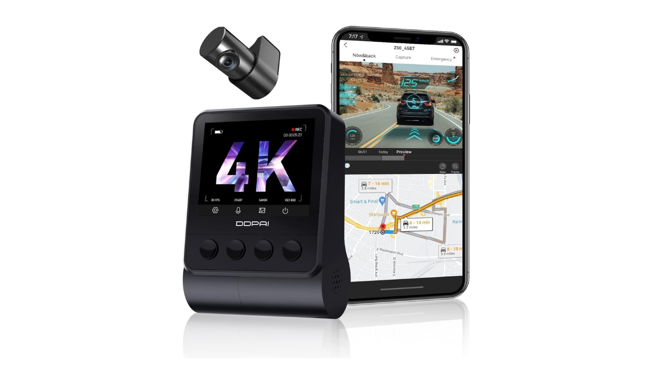 4ª Posição: Câmera Veicular DDPAI 4K + 1080P com Wi-Fi e GPS