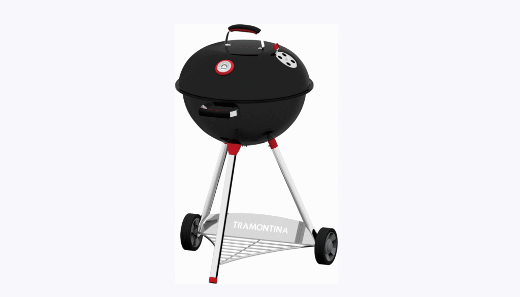 Em primeiro lugar, temos a Churrasqueira a Carvão Tramontina TCP-560L. Uma opção robusta e versátil que se destaca pela eficiência e alta capacidade. Com corpo e tampa em aço esmaltado, além de grelha e bandeja para carvão em aço inox, ela oferece excelente durabilidade e resistência ao uso intenso.