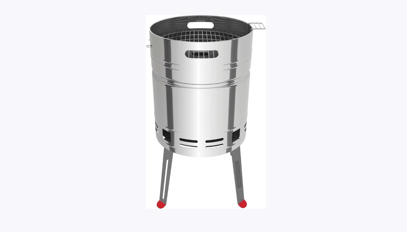Em primeiro lugar, temos a Churrasqueira a Carvão Tramontina TCP-560L. Uma opção robusta e versátil que se destaca pela eficiência e alta capacidade. Com corpo e tampa em aço esmaltado, além de grelha e bandeja para carvão em aço inox, ela oferece excelente durabilidade e resistência ao uso intenso.
