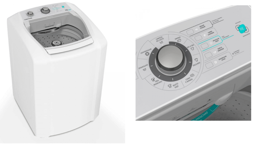 A Colormaq LCA automática, disponível em 12 e 15 kg, oferece um ótimo custo-benefício. Ela vem com nove programas de lavagem e um sistema antimanchas para lidar com sujeiras mais pesadas. O multidispenser indica a quantidade ideal de produtos, facilitando o uso. Para segurança, especialmente com crianças, há uma trava de segurança durante o enxágue e a centrifugação. O duplo filtro de fiapos cuida melhor das peças, e o duplo enxágue é bom para peles sensíveis. A centrifugação extra acelera a secagem, e a placa resistente à umidade garante segurança contra respingos.