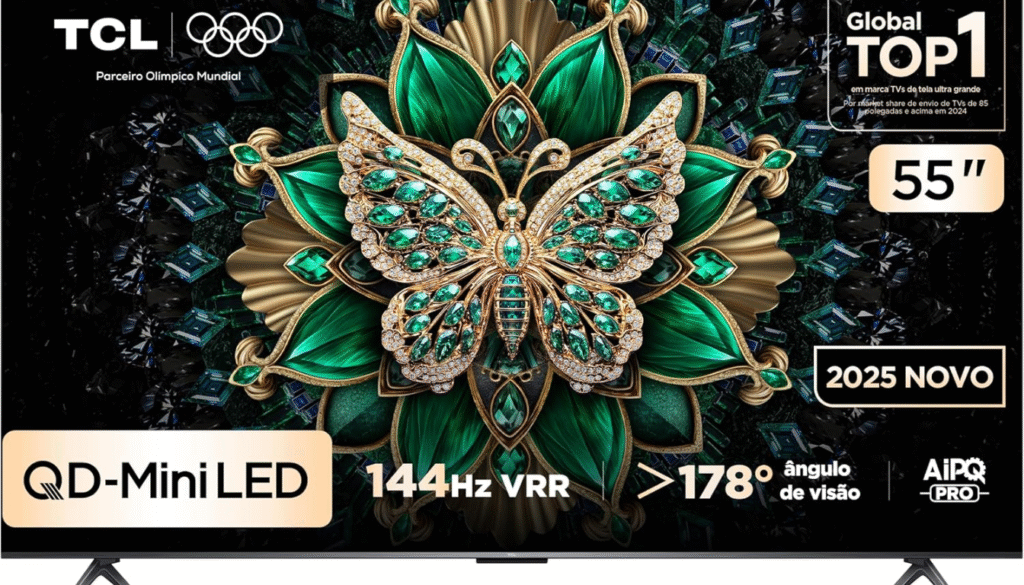 - TCL C6K: Considerada um dos modelos favoritos, esta TV Mini LED oferece portas HDMI 2.1, 144Hz nativos e até 500 zonas de iluminação. Seu painel HVA proporciona um amplo ângulo de visão e um brilho impressionante, superando muitos concorrentes diretos.