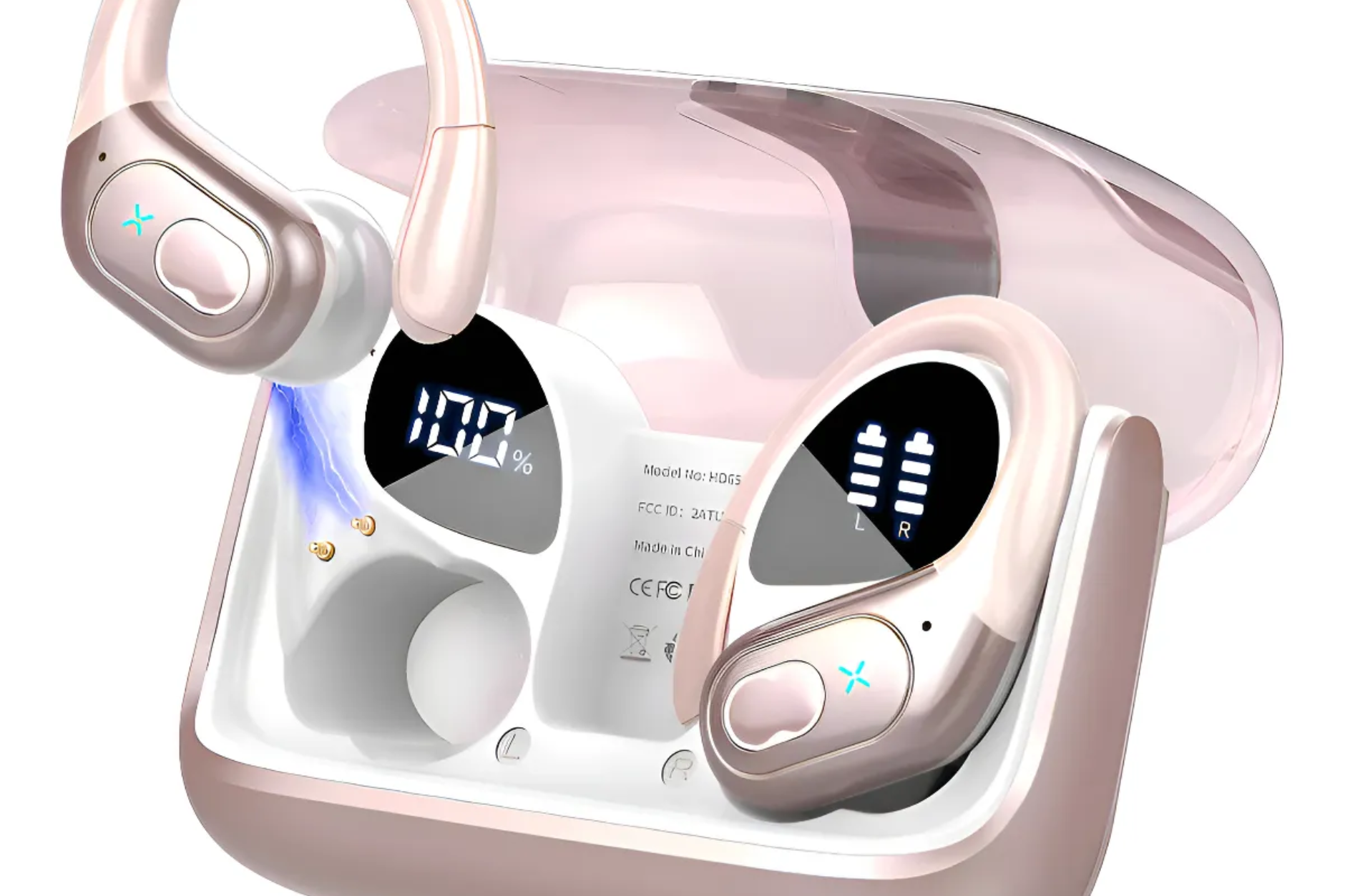 Fones de ouvido Bluetooth sem fio Mertto com gancho de 75 horas e 5,3650 mAh, Bluetooth 5.3, cancelamento de ruído Enc, tela LED, resistência à água IPX7, para negócios, entretenimento e corrida